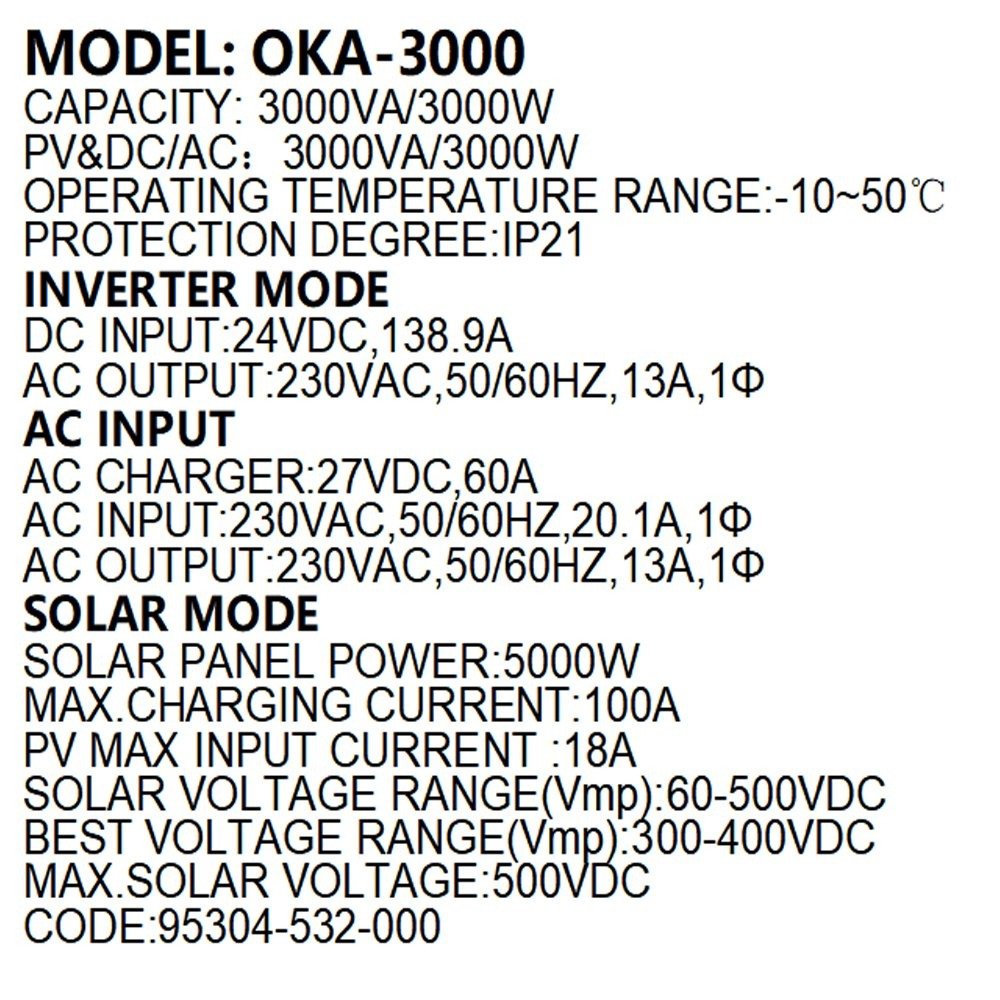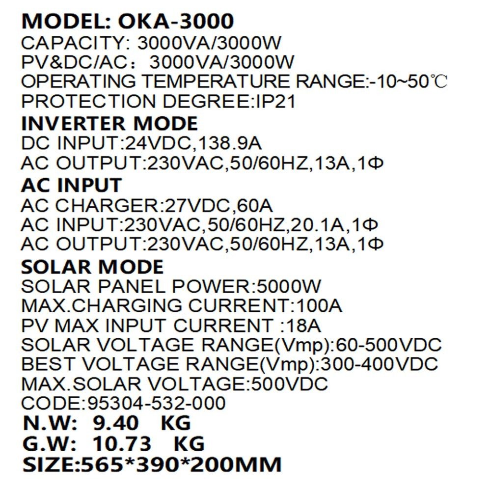 اوكا محول طاقة (انفرتر)العاكس لتشغيل الأجهزة المنزلية في حالة انقطاع التيار الكهربائي أو في حالة الطاقة الشمسية 3000 فولت امبير – 3000 واط / موديل اوكا 3000